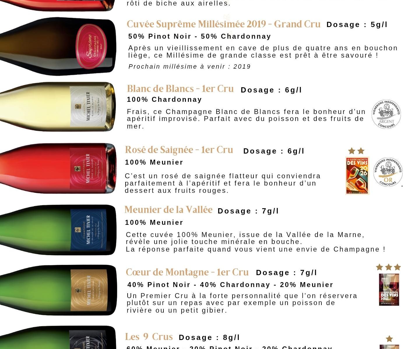une gamme de 8 champagnes tous différents : fruités, vifs ou intenses, il y en a forcément un à votre goût.